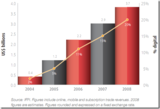 数字音乐持续增长: 2008年数字音乐收入预期增长25%达到37亿美元,数字音乐销量约占据唱片销量的20%,比2007年的15%增长了5%。其中单曲下载在2008年增长了24%,数字专辑增长率达到37%。美国约占据全球数字音乐市场50%,列居首位。日本的无线音乐下载的成功使其数字音乐市场占有率仅屈居于美国。 中国的无线音乐市场按理说在市场占有率上是处于绝对领先的位置,但主要集中在彩铃的消费 ... ...