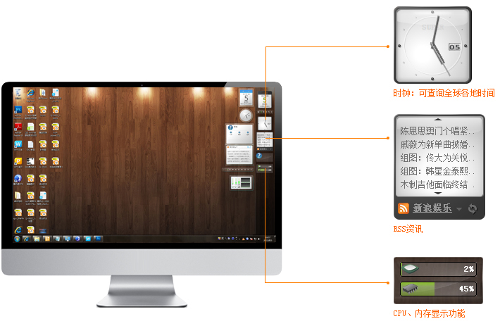 (1)最大特色:一款Windows 侧边栏软件,具备Vista 同类功能的特点。