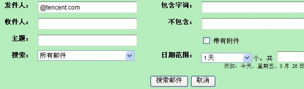 如果在主界面搜索,也能返回所有的结果。实际上,这里如果不选择日期范围(Gmail默认为1天),搜索结果反而是全部的结果,诚然,这里是一个交互操作上的问题,这里下拉列表的选项默认项应该是“全部”。