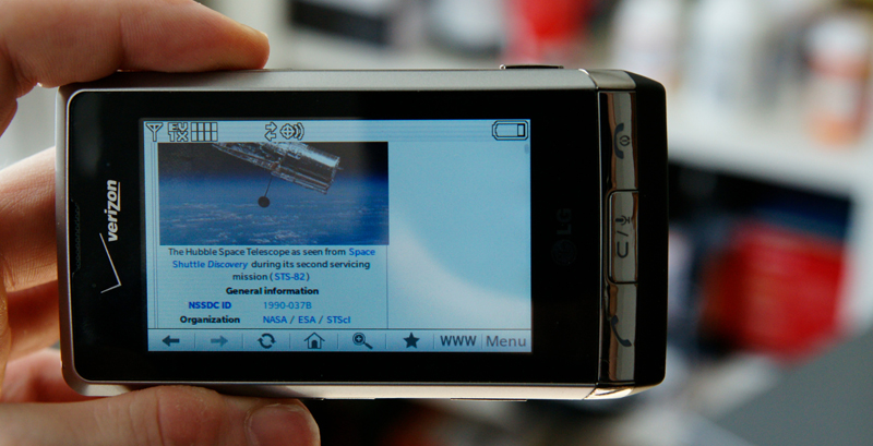 受Windows Mobile 总体性能的影响,有点慢,但是还可以用。没有Webkit内核的浏览器那么快,网页显示也没这么准确,但是确实是还能用的。比较有意思的是,它能比 Webkit的浏览器更好地利用到WIFI的带宽优势。用菜单来缩放比较郁闷,也不精确,触控的拖动查看还OK,但有点迟滞。我们经常用三星Epix的光电光标,它的爽度介于五向键和轨迹球中间。