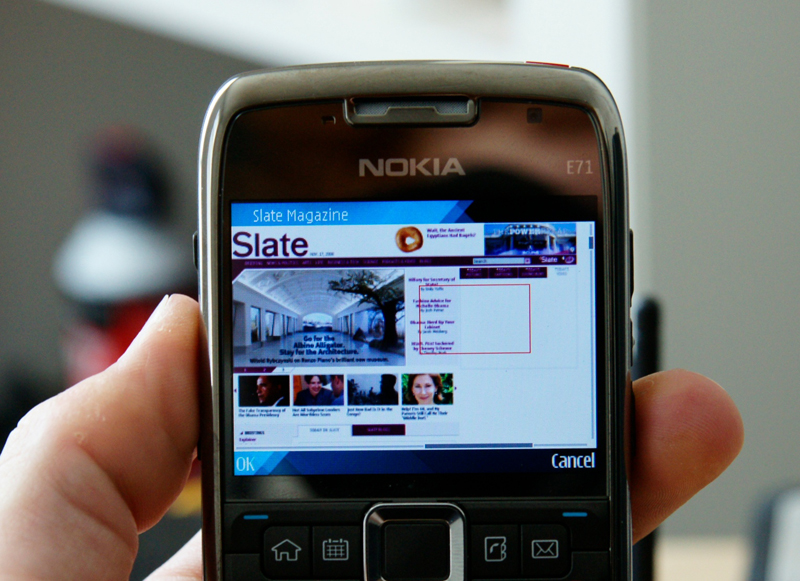 还有一款 Webkit内核的浏览器啊!在速度和网页显示的准确性方面,它没有Android和iPhone的浏览器那么好(symbian粉能解释为什么吗?),不过它还堪用。重要的是它支持Flash Lite 3,虽然有点吃内存,用五向键来操作比不上轨迹球方便,但是整个页面的缩放方式很容易使用,最不爽的就是你要进入两层菜单来找到这个操作选项。(注:E71浏览器的页面放大缩小,可以在浏览的时候直接按U和J键完成)总的来说, E71的浏览器很不错,但离优秀还差一点。