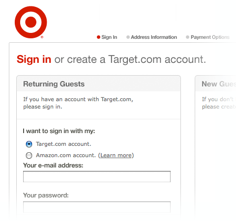 1. 不要让用户先注册再去选商品。 顾客们是来买东西的,不是来填表单的。所以需要确保用户在付款过程中完成了注册,而不是付款前就去注册,也不是让用户把商品放到购物车里之前去注册。注册表单的需要用户花功夫去填,注册过程中还可能有问题,所以这会成为用户顺利完成购物的障碍。 Taget这个网站就是当用户真正要把钱付了的时候,才让他去注册的。 在购物流程中,把注册这个麻烦往后面移,能使最后购买商品的用户大大增加。用户既然一开始就花了很多时间选购他们想买的东西,那如果在付款的时候因为注册麻烦而离开,前面选购商品花的时间久白费了。但如果用户还没开始选商品酒让他去注册,这时,他们还没花时间成本,就更容易选择离开。 2 如果这个商品有货,明确地告诉用户