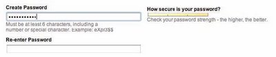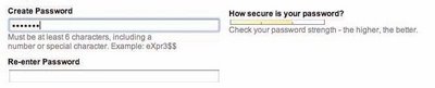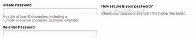 图9.2 密码是另一个出现错误的常见问题。要求人们使用大小写字母,数字和符号复杂组合来生成密码,给人们带来混乱,这是另一种“由内而外”的设计,我不想讨论这个事实。我想提供一种方法,通过即时验证帮助人们克服这些障碍。 谈到用户名,有效答案非常明显,要么没人用,要么被人用了。和其他相似问题相比,密码有不同程度的“正确”答案。符合最低安全要求,比如一个大写字母和一个数字,是有效答案。不过,这个密码不如一个大写字母,两个符号和三个数字的密码安全。后一个密码更“正确”。如何引导人们填写更安全、更正确的答案呢? 图9.3,eBay Express网站表单,利用即时验证不仅可以确认密码是否合适,而且可以表明密码安全程度。输入框右侧密码尺采用高度可视化方式让用户衡量密码质量。更重要的是,它能确保人们关注如何回答问题。密码尺这类方式会强迫用户完成。因此用户会更多考虑答案。此例中,用户最终创建的密码会安全到用户自己都不能记住,但那是另一个问题了!