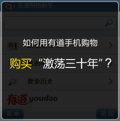 如果在扫描中或为扫描不成功,则只会停留在此界面,并无进一步提示,同时左软键也只有退出的选项,让用户无法知道扫描状态和进度等,也无法控制扫描进程。 在商品静止和光照良好时,扫描成功率较高,第一次扫描成功后对同一个条形码的第二次识别会加快。 在外面实际购物的时候,频繁的尝试的扫描恐怕是会被销售人员制止的,或者会引起不愉快,光线也不一定尽如人意,同时很多情况下扫描的商品并不是非常稳定的摆放在一个合适的位置,而可能是手持,此种情况下根据个人使用,感觉扫描成功率较低。 当扫描成功率过低时,会造成功能成为摆设。 三、条形码扫描改进建议可以考虑拍摄照片后,识别照片中的条形码。毕竟不少手机带的摄像头都有微距和自动对焦的功能,相片的清晰度会有一定保障,通过识别拍照相片应该可以带来实际使用中较大的识别率提升,从而提升使用感受。 四、其他1. 在结果页面下方会显示"小提示:通过有道购物可完成商品购买",可惜目前通过手机客户端只能进行商品介绍查看和价格查看,无法进一步购买,所以这个提示目前应该说是有误的。 2.历史记录功能很贴心,一般购物的时候是会重复比价的,历史记录可以减轻不少输入工作量。 3.页面载入速度不是很理想,有待进一步改善。 4.心仪的网易账户名字都被注册了,直接导致现在没有网易的账户。 (完)