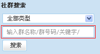 9:关于搜索 搜索可以细节到搜索前,搜索后. 搜索前主要是表现形式上的处理. ★必须向用户明示搜索范围,如下图的"输入群名称/群号码/关键字",则是搜索范围. ★类型的选择:此处设计为全部类型,目的是:其1为即使用户不输入任何条件的情况下,用户也能得到搜索结果,其2,有些关键字很难界定它所属的范围. ★搜索按扭的设计,应该立体一些,一眼就明白是可以点击的,这里的效果还可以再做些改进(本文的第1点也提到过).按扭上的文字是"搜索",而不应该是其他的"查找","search".这是习惯,<<别让我思考>>一书中也提到过.