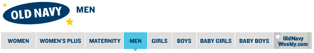 强调特定销售区 如果你发出的邮件,针对一个特定销售区的产品,而在导航条中就有这个销售区,可以考虑突出显示这个链接,如改变文本或背景的颜色。例如,当Old Navy发送关于男装的邮件时,他们突出显示了导航条中的“MEN”标签。