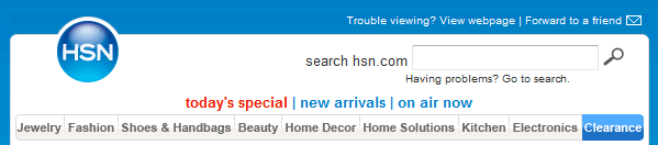 HSN运用了同样的技巧,但更进一步,在发件人名字中提示销售区焦点。例如,凡是来自其清仓销售区特定交易的邮件,发件人的名字都是“HSN清仓”,还有在导航条中突出显示“清仓”标签。