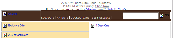 HTML导航条 对导航条的另一个考虑,是用图像还是HTML文本建立。只要可能,我们推荐利用HTML文本做导航条。这么做,可以保证即便在浏览者屏蔽图像时,你的链接仍然会能被阅读。默认情况下,大约有一半消费者在其主要的收件箱中屏蔽图像,让你的导航条保证能显示,对邮件效果的最大化很有影响,尤其是在你的导航条不需要异域风情的字体、图片或标志的情况下。 零售商正很快地意识到对导航条采用HTML的好处。目前,28%的水平方向邮件导航条采用HTML文本,较去年仅15%要高。HTML文本在垂直方向导航条中远远更为常见,有60%的垂直方向导航以HTML创建。