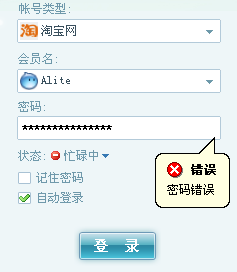 但是在阿里旺旺的登陆界面就应用了很纯正的气球状提示,如图7.