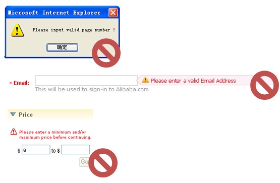 Case 1:B,C(A是前面的起订量,本文为了力求简单,忽略此项) 输入框都不填或清空时点击GO——页面刷新,执行在现有筛选条件上应用价格从0到无穷大的筛选。 Case2:B,C三个输入框中任何一个填写非数字及小数点的字符时——自动清空,不弹出任何提示。 注意:只清除非规范填写字符,保留符合要求的字符(数字和小数点)。举例,用户粘贴7a7到B或C输入框,自动清楚中间的a。 Case3:在B和C输入框里输入前大后小数字,点击GO,页面刷新后,输入框数字自动调整为前小后大。 Case4:B填写正常数字如100,C留空,点击GO——页面刷新,结果数为大于或等于100的结果。 Case5:B留空,C填写正常数字,如100,点击GO——页面刷新,结果数为小于或等于100的结果。 可是到了测试的阶段,才发现测试MM才是最变态的,她们总是能够找出更变态的Case,发现漏洞,于是,多亏了我们非常牛的前端工程师,体现了什么是见招拆招——Nothing is impossible~ 补充了case: Case6:B和C两个输入一样的数字(如100),前端自动转换为0到100,点击go后,提取价格小于或等于100的产品结果。 Case8: 输入框如果只输入小数点,执行同Case1. 某天,前端又提出一个问题:允许输入小数点,如果输入两个小数点怎么办? 继续咬牙补充: 小数位只允许输入2位,比如用户输入6.678,会自动清除8。 小数点若输入两个,自动保留第一个,清除第2个。比如输入6.6.,会清除第二个小数点——变成6.6。 测试MM又问了:如果粘贴6.6.6怎么办?是呀,粘贴怎么办呢?我都快要放弃了,咱还是整个弹出框警告一下用户吧。不过,那不就功亏一篑了吗?所以,后来变成了66.60。 最后,经过很多次的测试和各种变态的想法,此输入框终于检测通过。 背后则是前端工程师付出心血——代码,神奇的代码……将在续篇中由前端来继续揭秘。 作为交互设计师的心得: 其实开始想法挺简单的,就是想让校验亲和一些,不要动辄提示用户出错而是润物细无声,帮用户纠错完成任务。 随着项目的进行和更多人的加入,发现要想周全考虑各种情况,是很难的事情。 而且,自己也开始反思,这种强制替用户做主,是不是一件好事,或者本身就不该这么做。用户输入错了,就干脆提示他错了,让他自己有意识去修改,让出错显性和透明化,会不会更加好一些? 另外,这些变态的输入用户毕竟是极少数,为了这极少数的人太纠结,虽然是照顾到了设计的各个微笑的细节,但是如果考虑投入产出比,可能会有些因小失大。除非以后能够将这些已经开发出来的控件标准化,以应用到以后的项目里。 也想听听大家的讨论。 相关的文章:面对无理取闹的用户:http://heidixie.blog.sohu.com/117779486.html doubanclaimdb10c40996e7216f |
