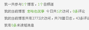 非 常喜欢新版后台的首页,增加了互动元素,其次让公告的呈现更加明了。对我这样的从来就不去BLOGBUS首页的用户,后台的首页需要呈现的东西还待增加。 不过公告的显示比较遗憾的是标题。公告区域过小,显示的标题过短,造成无法明确表达标题的意思,阅读减少。巴掌大的地方也是地方,尽量发挥出他所存在的价 值。