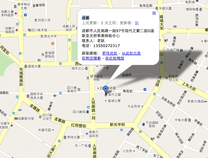 活动地点:在成都市人民南路一段97号现代之窗二层D座 新亚天府苹果体验中心