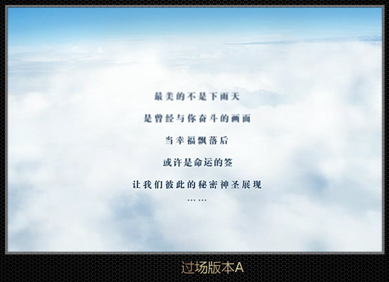 过场第一个版本使用了一个云的视频剪辑片段,转换很生硬(如下图)