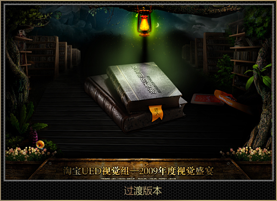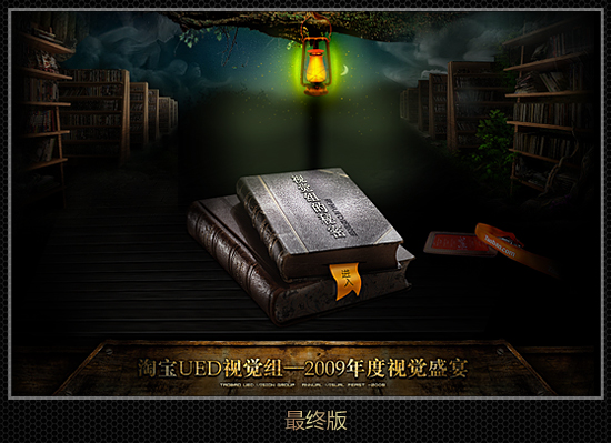 最终版里,去除了过渡版中左右俩边的累赘,加强了灯光与书本的光源关系,将视觉中心着重表现在书本上。