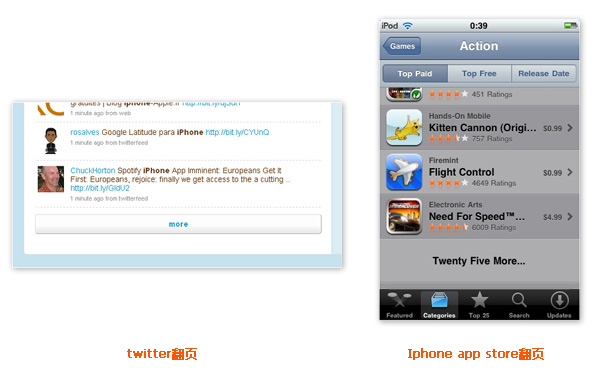 四、翻页的创新 【替代法】传统的翻页方式是“上一页+页码+下一页”,大家最熟悉的设计。 而近年兴起的这种“无尽滚动翻页”的翻页方式,即滚动条拖动到最底部后开始加载后面的内容,而不再有“上一页+页码+下一页”这样的链接。 相对而言twitter、Iphone app store这样的“递进式翻页”则没那么激进,保留了一个翻页按钮,是介于传统翻页与无尽滚动翻页的一种折中方式。 上图是Google book search一个巧妙的翻页设计,鼠标悬停在文档底部一个局部区域(高度约50px)时,出现一个半透明的层,点击这个层开始翻页。这个巨大的辅助翻页按钮,大大提升了翻页的便利性,且对界面影响很小。 这里讲到的翻页组件创新,是用新的翻页方式替代传统翻页组件。从信息的结构来看,传统翻页是将信息分段,而“无尽滚动翻页”属于信息滚动。这两种方式对应现实生活中的原型是:书籍和电影胶片,书籍把信息拆分到每页里去翻动,电影胶片的信息则一帧帧的滚动而过。 从信息流动速度和翻页便利性来看,“信息滚动”远远大于“信息分段”。这两种翻页方式如何选择?我想这应该取决于用户对后面内容的需求强度,像google搜索结果页这种越往后信息质量越低的场景,用户对翻页需求并不那么强烈。Google reader这样信息不是按质量排序的场景,提供高速的翻页方式是个相对必要的做法。 信息流动速度对信息接受者心态有很大影响,流动速度越快信息吸收量相对越小,所以阅读pdf文档比阅读纸质书籍心情急躁,忍不住去翻页,是在“扫描”而不是“阅读”(个人主观感受,如有雷同纯属必然) 由此也延伸出一点,交互设计师的工作职责除了架构信息,还应该控制信息的流动速度和供给量。 最后,以一张图片总结交互组件创新的四种方式,一家之言希望对大家有所启发。创新无定法,必然存在更多创新方式,欢迎交流补充: pigtwo#gmail.com |