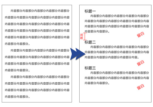 网站设计除了架构设计、交互设计、视觉设计这些方面以外,还有一个非常重要的点,那就是——网站内容。我们在进行网站设计的时候要首先思考用户为什么会来到你的网站,你能为用户提供什么样的内容,什么样的功能(帮助),你如何展示你的内容?要站在用户的角度,去体会你的网站。在体会网站的同事要记得理解用户。用户非常忙,他们都是急性子,短时间找不到想要的东西,就会生气的走开,你就丢失了这样的一位用户了。 用户使用网站,就好比是用户在与你对话,当一段对话变得驴唇不对马嘴时,用户就会抓狂,然后生气的走开,从此再也不理你。用户的性情会严重影响用户对网站的印象,为那些容易发怒的,焦躁的,有压力的用户提供的网站内容要特别的清晰简单。在记录用户想法时尽量记录用户的原话,理解用户在描述他们的需求时使用的语言,这样一来,在编写网站内容时就能够知道用户通常用什么样的词汇了。用户要在网站中有成功的体验,人们必须找到他们需要的内容,理解他们找到的内容,基于用户的理解进行适当的操作。 人们来到网站总是带着一定的目的或者为了完成某个任务而来,极少是有因为网站看起来好看而来的(部分设计师为了学习而来到一些优秀网站的设计,带着纯视觉的原因而参观网站。)用户在网站中搜寻,期望得到自己的答案,网站最好的方式就是做到跟用户对话,用户又什么疑问或需要,网页能够迅速的反馈,并给出用户解决方法。不过网站本身不会讲话,用户带着大量的疑问来到网站,网站就是为了解决用户的问题而生。 用户上网很少是为了认真阅读的(除了关注博客这样的以内容为主的网站外),用户在网页上大多数是采用浏览信息的方式,相比较电脑上阅读,纸面的文字读起来比网页的文字有质感也更亲切,正因为如此,我们在设计网站的内容时需要考虑用户浏览信息的习惯,减少篇幅过长的文字堆砌。网站的文字大段大段的出现,用户看起来很伤神。网页的文字能简短就简短写,当写好了一段文字后,一定要仔细阅读是否能够有所删减,网页上给用户呈现的文字应尽量是重点文字,避免废话连篇的占用网页空间。 在编辑网站内容时,大篇幅的内容写成几个部分并标上标题,这样用户在阅读时就能够先阅读标题了解内容,这样用户就不用费很多时间阅读自己不需要的章节了。当然,章节标题的意义是为了概述一段文字,因此标题需要仔细斟酌,切不可随意的安放一句话就当做标题。另外,标题与内容要比其他的信息接近,当标题和上下的文字间距相同时,标题就会“飘”在两段文字间,让用户茫然。标题和文字间应当使用紧凑原则来布局,这样用户就能准确的知道标题概述的是哪个部分的内容。如图: 网页需要留有一些空白,分为无心留白和有意留白。因为内容多少的缘故出现的留白是无心留白,特意安排的空白空间是有意留白。虽然无心留白也能够让界面有呼吸的空间,在设计时也应当多使用有意留白,段落中的留白给网站内容留了一些呼吸的空间,让页面更通透,来访的用户不会被大量的密集文字压的喘不过气。 网站内容可以恰当的使用一些图示,图片比文字更能够直接的传达信息,图片的出现让界面更加生动,也让用户可以更容易知晓网站的内容。但是图片的大小需要仔细考虑,根据网页设计的大小来安排图片的排布。图片的大小应尽量不要占满屏幕,来访的用户看到满屏的一个大图很可能不会记得往下滚动,这样下方的内容就被用户忽视了。