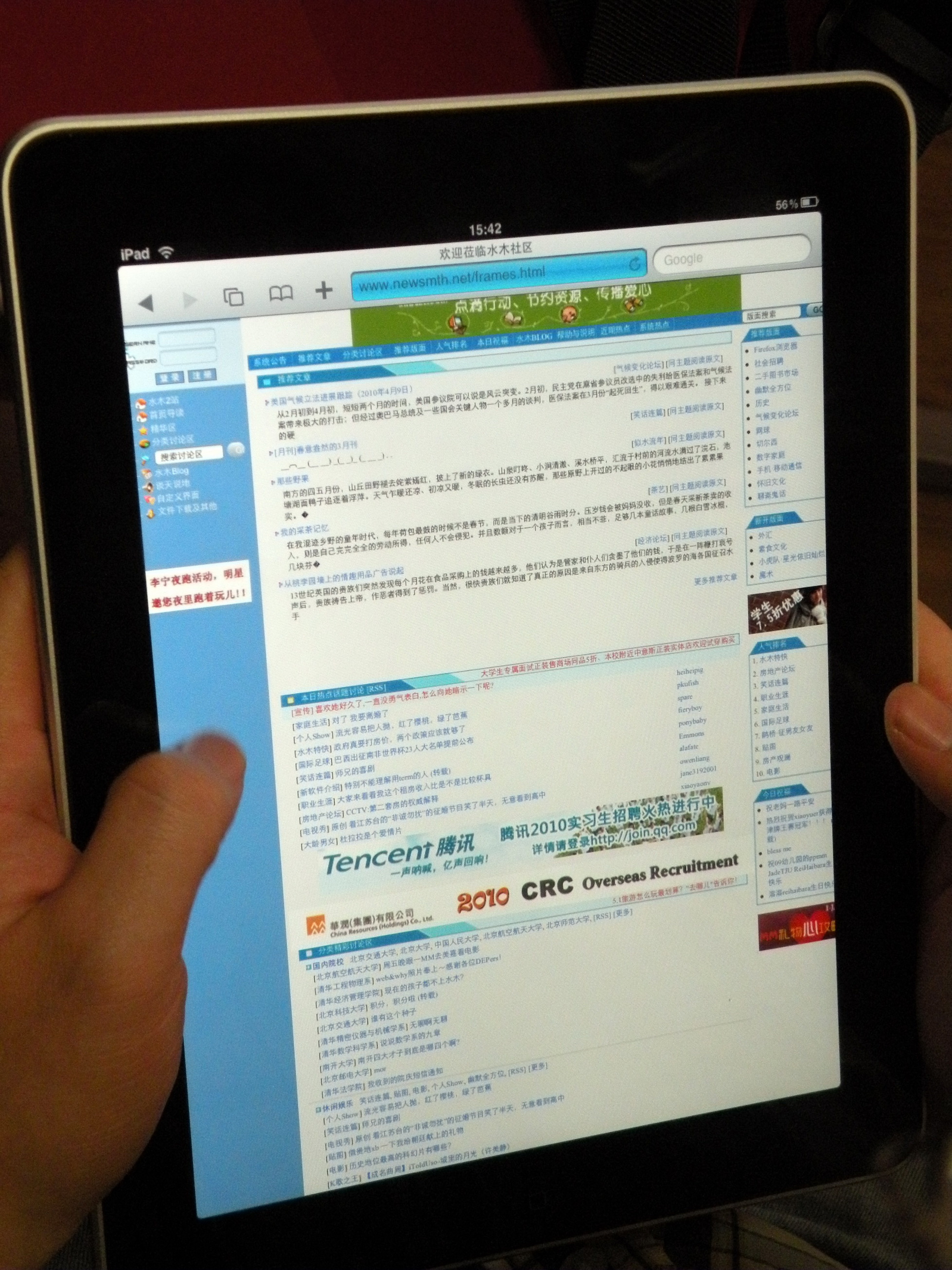 这里还有一张使 用iPad阅读纯文字电子书的照片,点击可以查看大图。汉字以从未有过的最让人赏心悦目的方式出现在了一台电子书上面,这还不够吗? 当然, 我觉得如果翻书时再加上一点真实音效的话就真的完美了。 其次,浏览网页的MID。作为一个上网本,最重要的是什么?手 感、电池续航、显示效果还是操作的易用性?