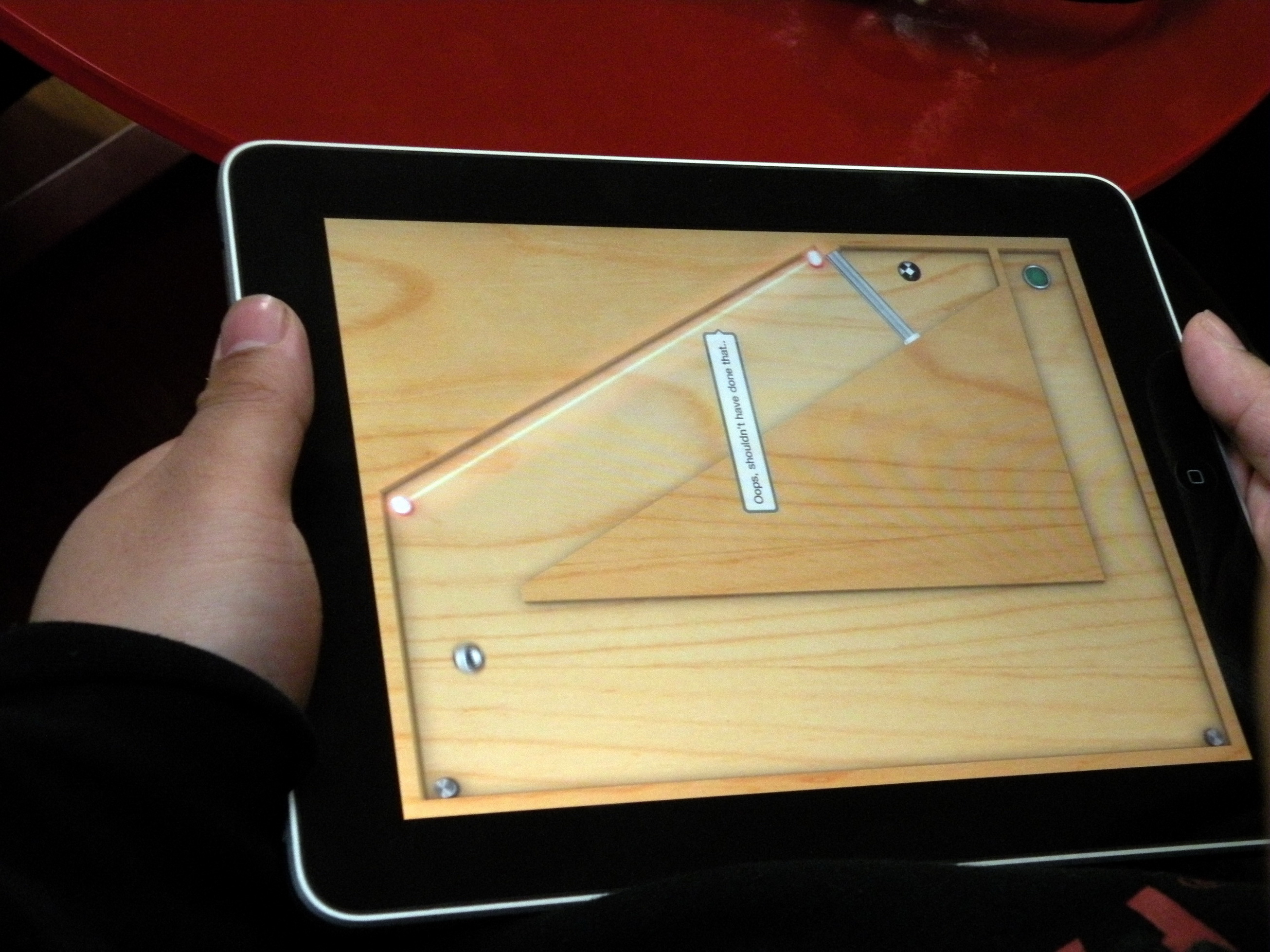 还有这款 iPhone上非常火爆的弹球迷宫游戏,如此逼真的效果很快就让人忘记了自己手里捧着的其实是一台“五脏俱全”的电脑(如果没有那个黑框就 和真的一模一样了)。 以及,创意无限的应用。个人觉得苹果最牛之处并不在于硬件或软件多么牛B,而在于他 给全世界数十万的开发者梦寐以求的发挥创意的一个平台,在这里你只需要实现你的创意,其 他的一切都由苹果来搞定,而且苹果提供了触摸、重力加速感应、电子罗盘等革命性的硬件,由此可以产生的创意是无穷的。 例如这本Disney Toy Story,它绝对是iPad上最炫的电子书。试想您的孩子拿着iPad一边翻页一边看着各式动画效果出现在这本漫画里,而且还有动听的电影对白,多么美 好的同年呀。最重要的是你无须向孩子介绍这玩意该怎么用,因为他们只要凭着自己的直觉就可以玩转这个东西。