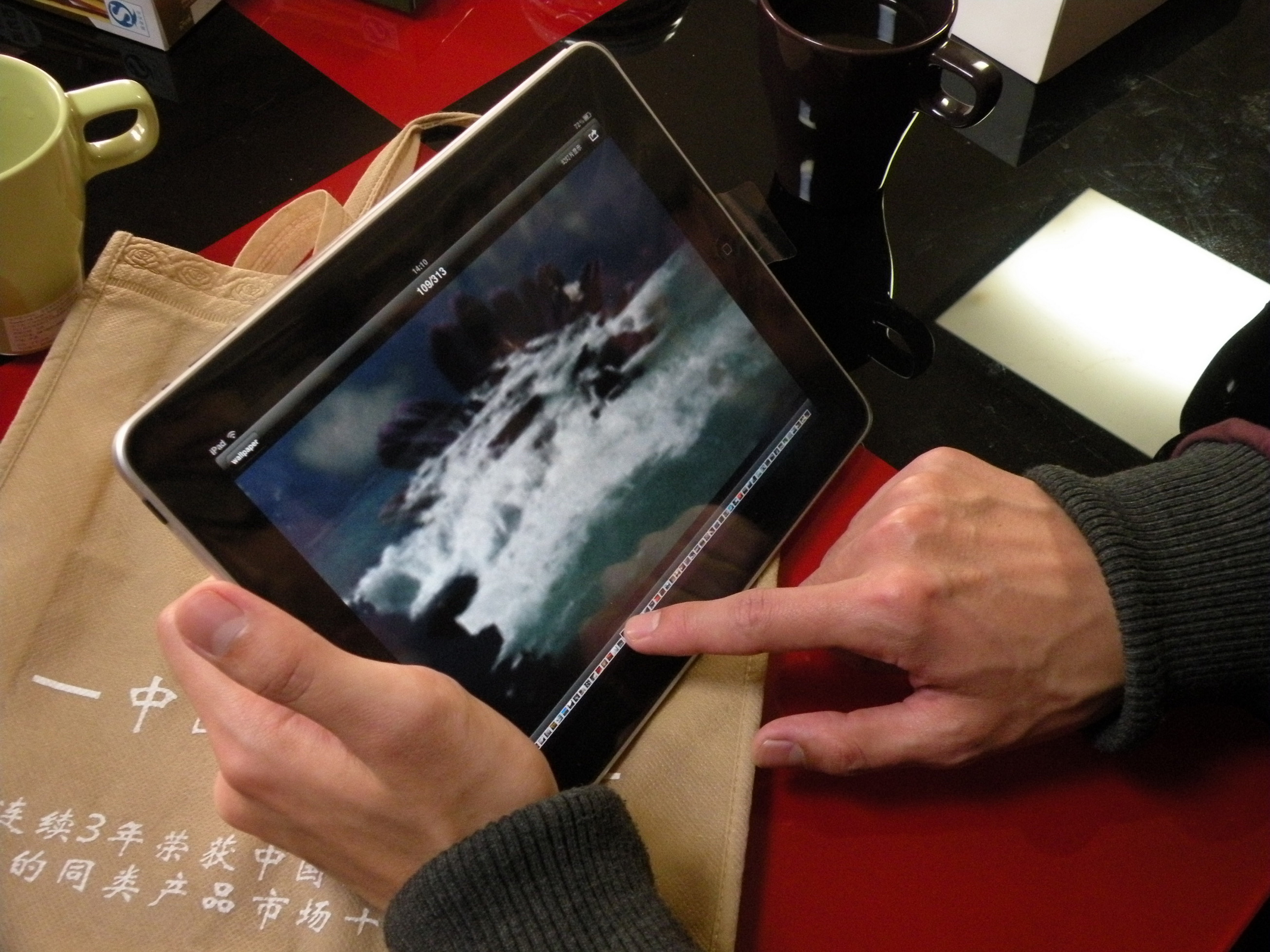 而且用指头在下 方点选特定的图片其定位成功率非常高,当然,如果是手指头平均尺寸更大一些的老外就不好说了,但目前为止还没有见到有国外评测对此进行过抱怨,只能说苹果 在触摸算法技术方面做得太成功了,iPad知道你手指头上丝毫的力度倾斜并且对你的想法进行解读,敏感度和现实生活中的物品基本一 致。