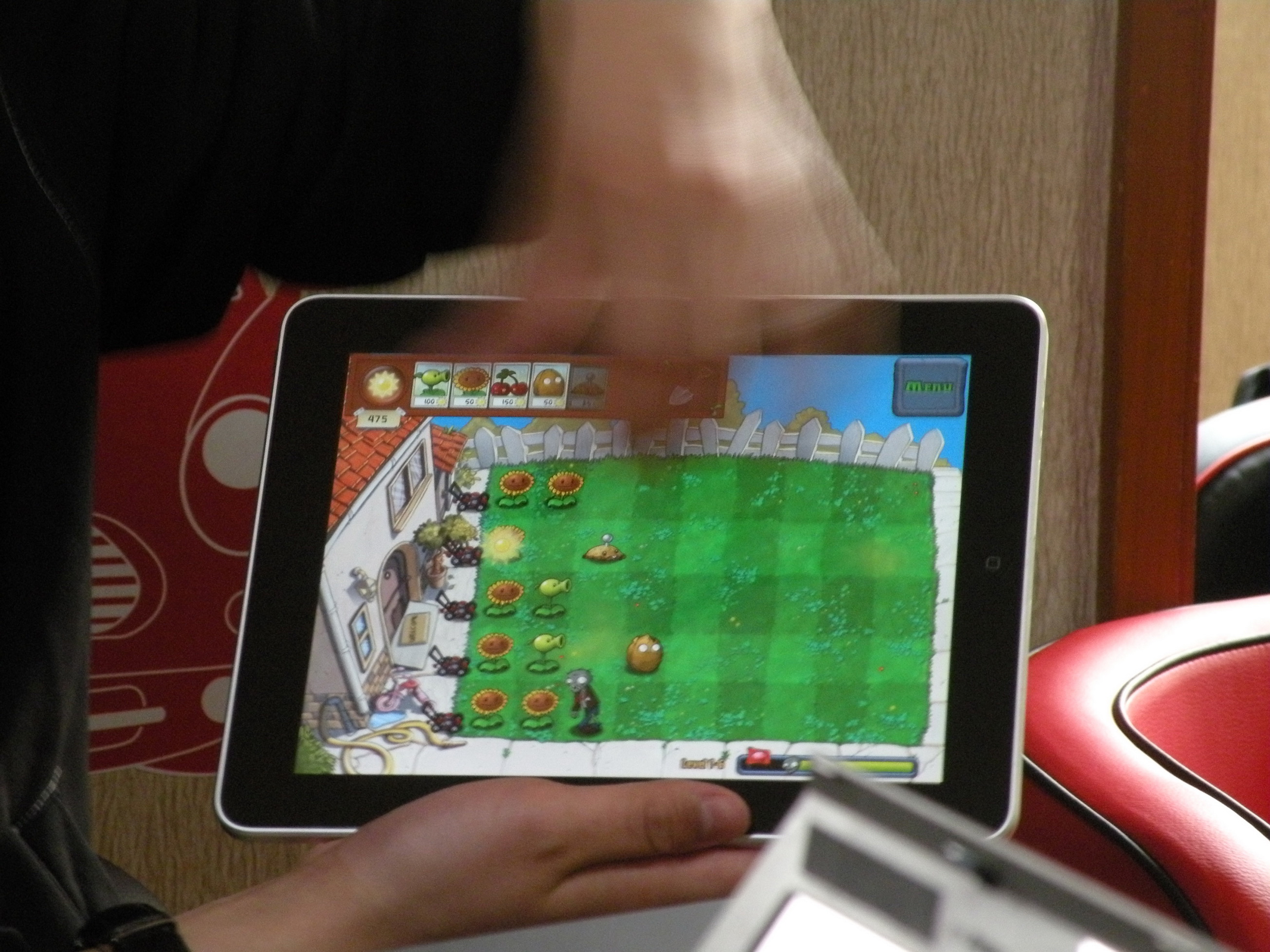 还 是最近超级火爆的《植物大战僵尸》,我也在Touch上玩过这款游戏,而iPad版优点很明显:大并且精美。如果使用普通上网本与iPad同时来个“剿灭 僵尸竞速大挑战”的话,使用鼠标的上网本能赢得了用双手不停的在屏幕上点来点去的iPad吗?更别说使用iPad玩游戏有更多的舒服姿势可以选。