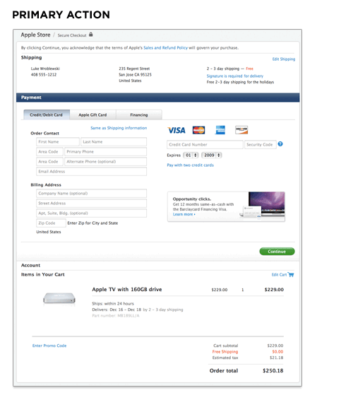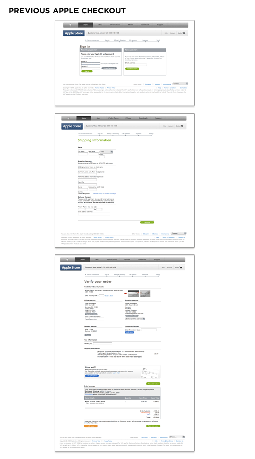 [前言]读英文的博客和英文的书,也读了不少,读的时候摇头晃脑也读得懂,可是读过之后,感觉却没啥收获,想来是因为读中文,一边读一边是在思考和反刍,而读英文,却是一边读一边在词对词翻译。这次,做订单项目,对各个电子商务的订单流程很感兴趣,所以试用了若干个电子商务网站,进而对订单表单设计很有兴趣,恰逢此时,看到大名鼎鼎的luke写了一篇《The Apple Store's Checkout Form Redesign》,这次,为了避免读而不懂的问题,干脆找个时间翻译了出来,也旨在能够帮助到与我遇到同样问题的同学们,翻译水平有限,请见谅。