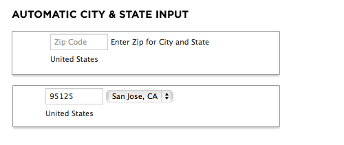 简而言之,它是一组可伸缩的信息面板集合。手风琴面板恰当使用能够解决信息比较多但是空间受限制的问题。 先前的表单设计使用了顶端对齐的方式去向用户呈现问题,新的设计仅仅将版块标题顶部对齐,而将标签(Labels)放到了输入框(Input Field)内。在可用的屏幕面积不足(比如手风琴表单)的情况下,将标签与输入框整合在一起作为一个用户界面元素,可能是一个不错的节省面积的尝试。 当然,这里也有一些值得考虑的若干因素。 在输入框里的标签(label) 将标签放置到输入框里的交互要求当用户将他们的鼠标放入输入框时,标签能够立即消失,这样,用户才能够比较容易地进行输入。不然,标签将会变成他们答案的一部分。当用户输入答案时,标签就消失了,所以这也导致答案对应的上下文也消失了。所以,当你突然忘记了你的答案对应的问题是什么的时候,很不幸的是,你无法找到它。所以,将标签放到输入框的做法并太适用于不是长的或者哪怕是中等长度的表单。当你填完了整个表单后,所有的标签都消失了。这导致你重新回头去检查你的答案非常有难度。 苹果的解决方案也许能够缓解此问题,因为表单要求填写的内容有着通用的已知格式。寄件地址,打个比方,有一个众所周知的格式,从而能够帮助用户理解如何去回答关于收货地址或者账单地址的问题。另外的例子包括“first name”和“last name”,日期和时间,或者一组电话号码。当标签消失后,这些输入组合仍然能够提供额外的线索帮助用户输入。始终可见版块标题也能够起到作用。 最后,在输入字段标签应该用一种方式,它能够使人乍一看就明白他们是标签,而不是答案。Apple的表单将标签文字做成灰色,以区别答案。 自动选择的城市和州 在苹果新的结算表单上,用户被要求首先输入他们的邮编,然后要求选择他们的城市和州(如上图)。Heidi注:这种交互方式就是,让你填写了邮编后,系统会自动匹配符合该邮编的城市和州的组合给你选择,而不是默认的所有选项。好的一面,这种做法消除了一种回答问题的笨拙的方式,具体地说——不得不从50个选项的下拉菜单里进行选择。不好的一面,当用户面对一组符合寄件地址结构的输入表单时(正如上文提到的),他们会经常跳过标签(下意识地进行填写)。而这个地址表单的元素与布局对于美国所有人都是熟悉的——苹果网站由于将邮编的顺序调整打破了用户熟悉的表单结构。