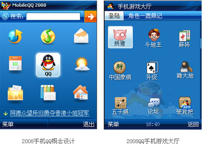2008版的QQ手机游戏大厅是延续的手机QQ的一个概念设计的风格,手机QQ起步比我们早,工作上也提供了很多帮助,这里感谢3G产品中心给 予帮助的朋友:)。