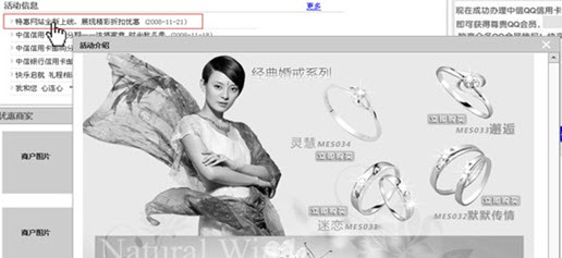 4) 承载的信息量 弹出窗口可承载的信息量有限,操作流程不宜过多。 5) 内容的推广 弹出窗口没有独立的连接地址,在页面推广上有所限制。 实例一:在做信用卡频道的活动列表时,最初的设计是点击活动信息的标题后,用弹出窗口来展示活动详情,然而因为活动页面需要在推广时有独立的地址便于用户能够从其他途径直接访问到活动详情页,因此改为采用切换页面的方式。
