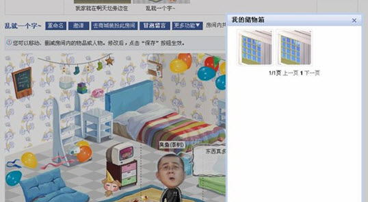 用户在写日志的时候插入一张照片,如果这时候插入照片的界面是切换一个页面,用户可能就会担心之前的输入是否还在,而弹出窗口则可以在保留原页面已编辑的文字,在此之上出现一个小型的界面,显示可以插入的照片。 实例二,秀世界中我的储物箱,用户需要看到房间中的效果,来决定从“我的储物箱”中选择哪个物品放入房间里,用弹出窗口可以比较方便的解决这个问题: