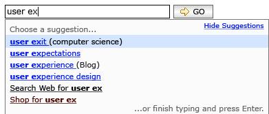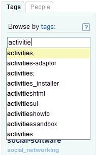 同时支持键盘操作,上、下方向键可以用来选择匹配的项。 图2 Lotus Note v8.0 如图3在一些集成开发环境中,系统会从规定的参数中基于用户的输入提供一些匹配的关键字。在开发中使用这种设计模式,帮助程序员大大地提高效率。从认知上由系统给出提示减轻了记忆负担,而操作上程序员只需要选择不需要输入对应代码减少了操作,降低了出错的可能性。在集成开发环境中,系统会根据用户输入的值匹配标签中的任意部分进行提示。特别是标签的自动关闭,语法提示都是自动完成这一设计模式的体现,很好地提升了体验效果。 图3 Lotus Note v8.0 IBM Rational Application Developer 图4 中这里说明普通的匹配列表如何做优化和引导。匹配列表也可以提供一些使用说明和额外的相关信息。 图4 IBM w3 portal 自动完成这个设计模式除了在简单的文本输入框中有应用还可以使用在其他环境中。图5说明了利用自动完成去指定对应的属性。一旦从列表中选择了属性,相对应的值也同时会被设定。这里将属性与值配对在大型软件开发的协同工作中有特别的意义,保证了输出质量的统一和规范。设计和开发只需要去调用就可以,大大减少了沟通成本。 图5 IBM Fringe 图6自动完成与标签组合,很显然只会匹配那些以标签名开头的项。在一些企业内部的SNS应用,自动搜索这一个模式可以与很多Web 2.0的元素组合,提高设计体验。 图6 Lotus Connections