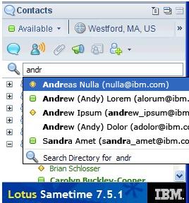 典型应用:邮箱,即时通信软件 图1 Sametime 7.5.1 好,现在我们来思考下这简单的交互中,有哪些需要在交互设计中需要注意的地方。笔者从输入、匹配、选择这三个方面进行分析。