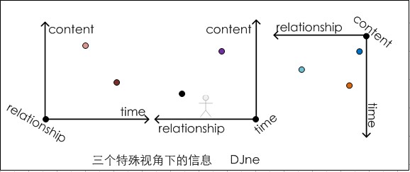 写在题前:这是一篇很长的文章,我想通过在一个空间中将信息具象化,去寻找最适合的信息展现方法;研究这些无非只有一个目的——在恰当的时候,用户可以用最少的精力看到最多的、最希望看到的信息,这些看起来是变化无常的,那么固定思路做出来的产品如何能去适应这种变化? 现在的信息如何展现? 对于UGC类产品,面对日益膨胀的信息数量,往往会考虑去给信息设置分组(分类),试图来展示用户感兴趣的信息,如下图为人人网和新浪微博的信息分类方法 但是在进行分类的过程中,为了一个看似合理的分类规则,却不得不费尽心思: 增加一种分组意味着用户多一步操作,还要放在界面中一个醒目的位置 很多用户虽然知道这些能解决一些问题,但还是不愿意去多点几下,随着问题的逐渐严重而产生抱怨 是按照人际关系去分组,还是按照内容分组,为什么任何一种分类都很牵强,而两者都考虑的分组又显得如此繁琐? 现在是怎么分类的? 上图中,人人网将新鲜事分为全部、状态、相册、分享、日志和公共主页,而微博中则分为全部、原创、图片、视频和音乐,这些都是以以内容类型进行分类 人人网可以设置几个人为特别关注,将一些人的新鲜事显示在“特别关注”中,微博中则引入了“群组”的概念,声称“话痨又在刷屏,试试分组功能吧”,但把话痨放到分组里后,在“全部信息“中仍可看到他的长篇大论 另外,话痨不会永远都是话痨,沉默的人也会突然有小宇宙突然爆发的时候,所以群组解决不了话痨的“骚扰”。微博中按内容类型的分类也会有大量的重复信息,如下图所示 优化展现方式之前要做什么? 用邮箱来举例:面对大量的未读邮件,我们应该优先处理掉其中的垃圾邮件,下一步才会有分成订阅邮件,广告邮件等。 而对于信息,我们应先处理(合并)其中的无用信息,比如那些被反复转发或并不感兴趣却占据timeline很多位置的直播,应用提醒等 我们会关注信息的那些属性? 人总是越来越忙,也越来越懒,而信息却越来越多,人们对接收信息的要求也越来越高,信息于是被赋予了更多的属性——我们会关注信息的作者与自己的关系,我们会关注信息的时间概念(注1),我们会关注信息的内容和形态,简称为time,relationship(people),content(type) 这里将信息的三个属性填在立体几何中的三维(X,Y,Z)中,也就是说,不同的time,relationship和content都可以代表空间的一个点,这个点就代表了一个具象化的信息 如何表达用户“关注点的变化”? 有一种事物最适合用来表达这种变化,它就是我们的“视角”。不同“视角”看这个三维空间中的点,就像是用不同的关注点看信息。由于信息的众多属性,如果多于一个属性被关注,那么按照单个属性分类的方法是解决不了问题的 这里引用数学中的“取极限值”来分析视角变化产生的影响,下图中展示了三个“极限值”的视角(可以将上图画在一个立方体纸盒上,旋转纸盒来获取不同视角) 视角如何变化? 一个生活中的例子,我们从远处向一座高楼走去,这时候眼睛看到的楼高是不断变化的,当停下脚步,楼高不再变化。用上图二的例子,我们站在relationship线上向content走去,content也是不断变化的,也就是说,在不同的relationship影响下,相同的content看起来却不一样。而一旦这个relationship范围固定,看content的时候也就有了一个自认为合适的视角。一些群组具有这种relationship固定的优势,如全是陌生人或全是熟人,这时候对待所有群内信息都不用重新审视relationship Time有些时候只是一种排序方式,我们按照一定的排序去查看信息,对content有一个粗略的认识,同时会去在意这个信息的发出者和自己的relationship,明确了relationship后,就相当于在relationship上找到一个合理的位置驻足,这时候的视角就是理想的阅读信息的角度,也就是通过用户自己的行为去判断他关注这条信息 如何节省用户的精力? 当看完一条信息,顺着time排序去看下一条,如果是另一个人的信息,我们需要重新在relationship上站位,以获取最佳视角。这种体验有时候很不好,不断切换占位会很麻烦,导致大部分信息会被用户站在一个视角略过。在Twitter上,用户看到一个人的某条信息,可以点击获取这个人近期的信息列表,在这里面看信息,不用重新进行relationship定位,表达效果要比在timeline中的好 我们换一个角度看上图,如果将content固定(上图一、二所示),那么可以将relationship弱化到一点,展示time,如将同一条新闻合并到一起,显示它最早发布的时间;或者将time弱化time来展示relationship,如将不同人转发的相同信息合并,只显示谁谁转发了这条信息,并可以将这条信息放在timeline之外,如twitter中的“Retweeted by” 如A关注了B,B关注了C,B转发了C的信息,A看信息时,会建立自己的三维信息空间,同时,B看信息的时候也有个三维空间,和A的并不重合。于是A-B的relationship与B-C的不重合,对A来说,面对C的content,他会重新在relationship上寻找合适的视角。如果C淡化到可以被认为是B,那么A就不会审视当前的视角, twitter这点上有很深的理解,而微博派(weibopi.com)读起来感觉很费劲 如何推送更多信息? 当然,对于不同的信息,我们首要关注的不一定是relationship,最理想的方法是通过分析用户上次的关注内容,来判断用户的关注点。Twitter上右侧的信息栏体现出这种变化,对有#和@标记的会做不同的处理,至于一个符号是否就能代表用户对这条信息有不同的关